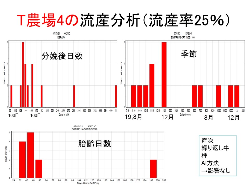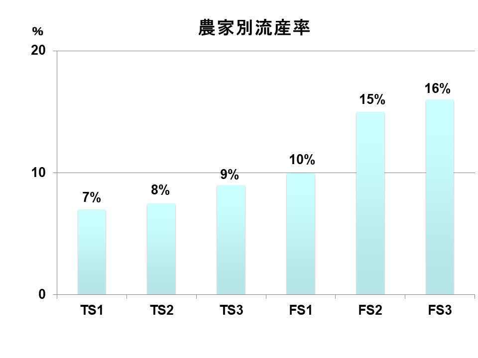 T農場1(タイストール農場1)のように胚死滅・流産率が1%台の農場から、T農場4のように25%に及ぶケースもあります。