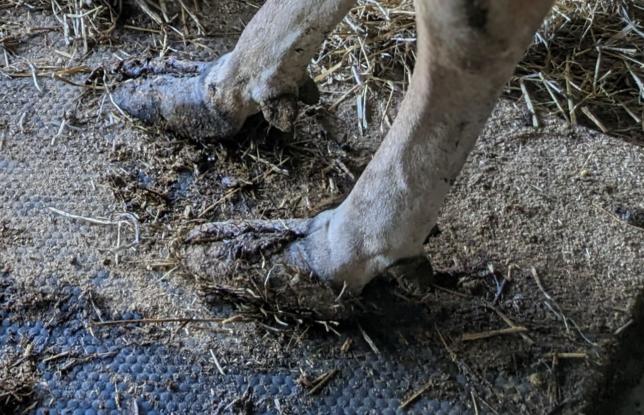 長い間、削蹄をしていないのでツメが伸び放題です。ツメの間にウンチもびっしり。
