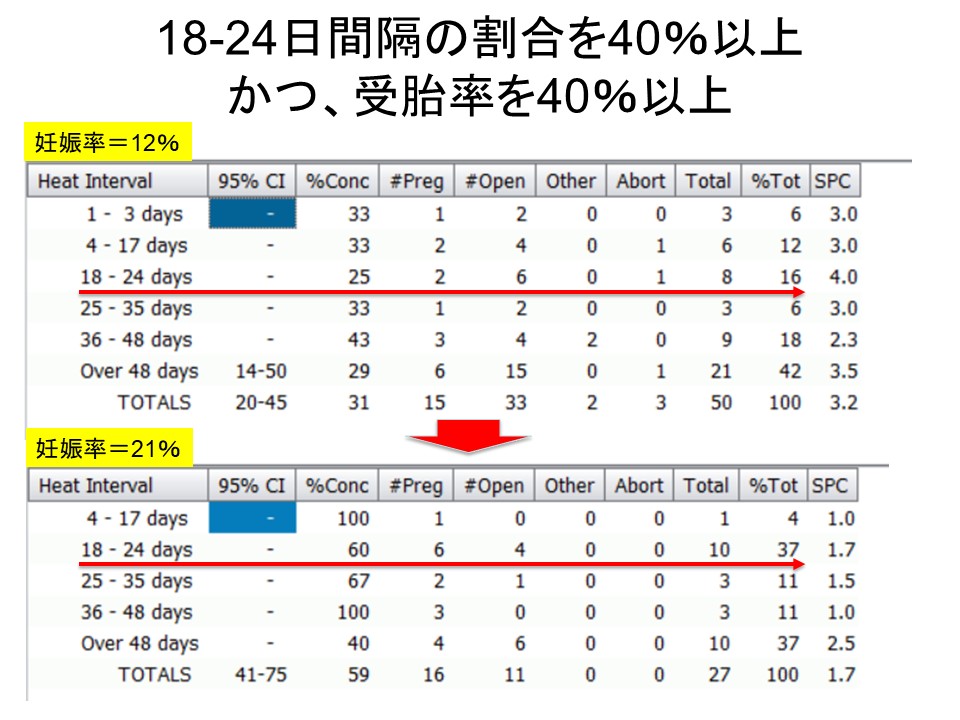 目標は18-24daysの割合を40%にして、その受胎率40%以上です。