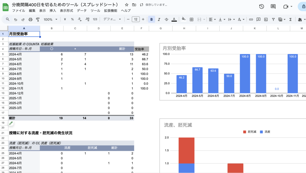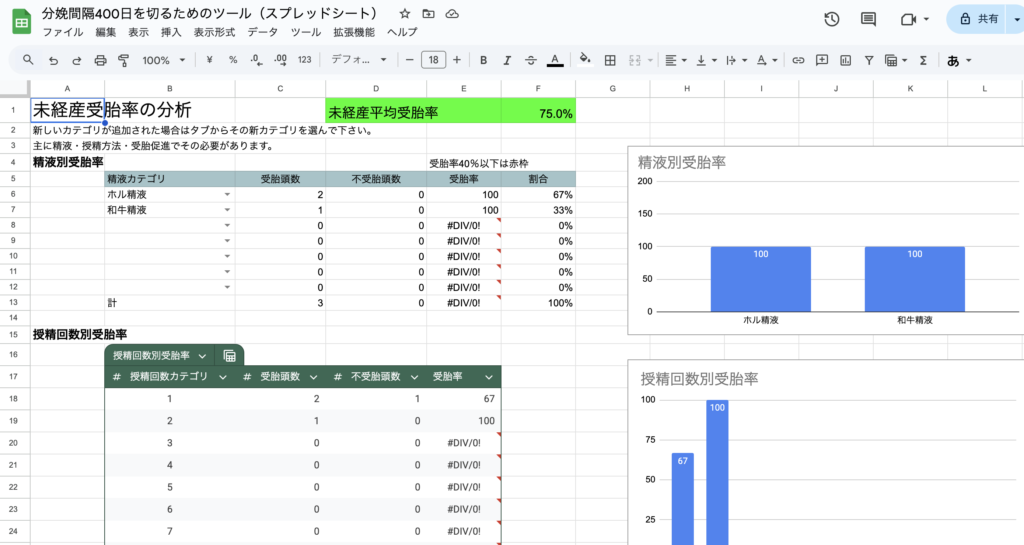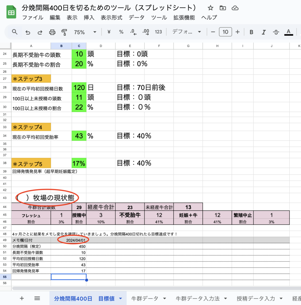 下記に、分娩間隔400日を切るためのツール(スプレッドシート)を添付しています。